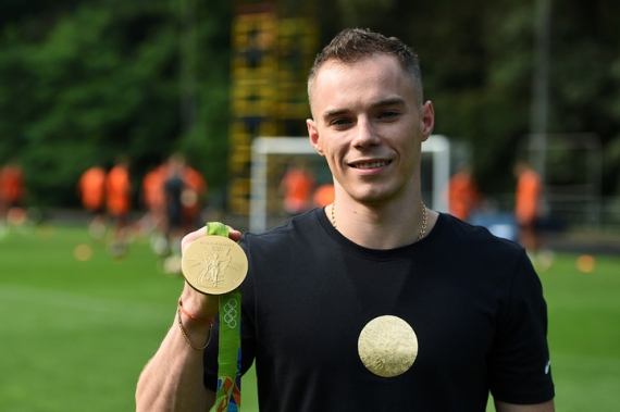 Ранкове тренування донецького "Шахтаря" відвідав олімпійський чемпіон Ріо-2016 Олег Верняєв. Гімнаст, який завоював для України золоту і срібну медалі, приїхав на базу "Святошин" на запрошення Андрія П'ятова.