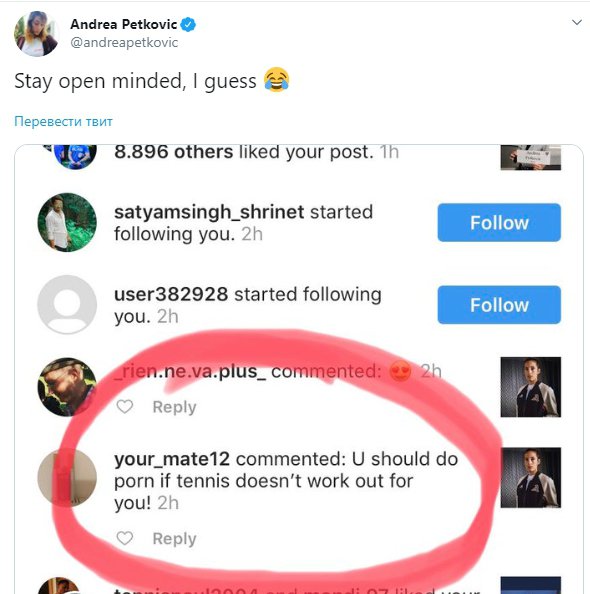 "Знімайся в порно, якщо з тенісом не вийде!" — написав фоловер спортсменці в одній із соцмереж.
