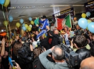 У Борисполі новоспеченого чемпіона світу зустрічали вболівальники та друзі з національними прапорами, синьо-жовтими кульками, букетами й плакатами. При цьому скандували: "Постол - чемпіон!"