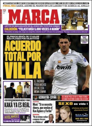 Сьогоднішній номер газети Marca повідомляє, що ще одним новачком "Реала" став Давид Вілья.
