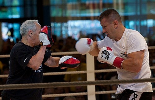 Першим на ринг увійшов Адамек, який втім, не став розкривати своїх секретів і обмежився традиційним набором: розминка, бій з тінню, спаринг з тренером.