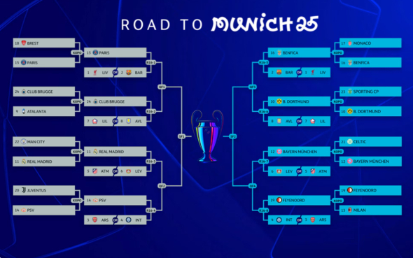 Наприклад, Реал Мадрид і Баварія, які посіли 11 та 12 місця, мають лише два варіанти суперників - Атлетико та Баєр, які посіли 5 та 6 місця відповідно.