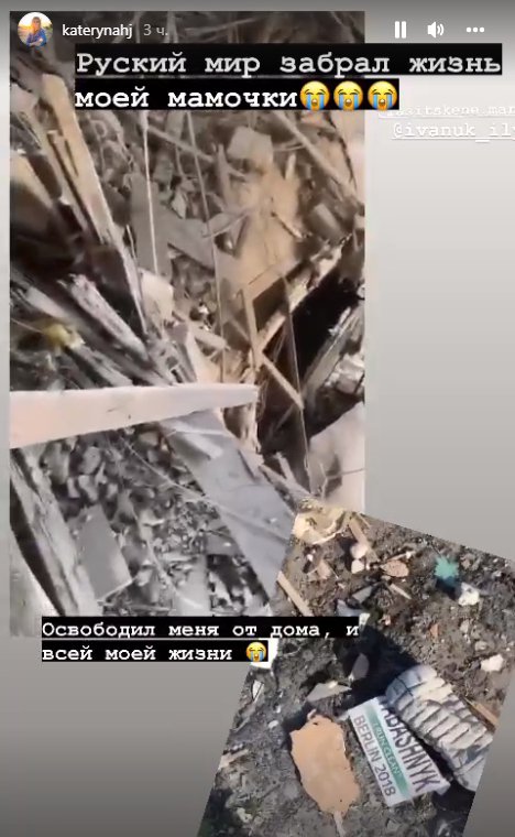 Серед руїн на відео можна побачити бейдж із прізвищем Катерини з чемпіонату Європи 2018 року в Берліні, де вона стала п'ятою.