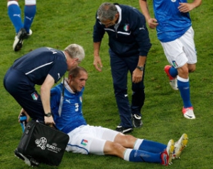 Захисник збірної Італії Джорджо К'єлліні не зможе вийти на поле в матчі 1/4 фіналу проти команди Англії, повідомляє Reuters. К'єлліні отримав травму в матчі проти збірної Ірландії 18 червня і був замінений у другому таймі.