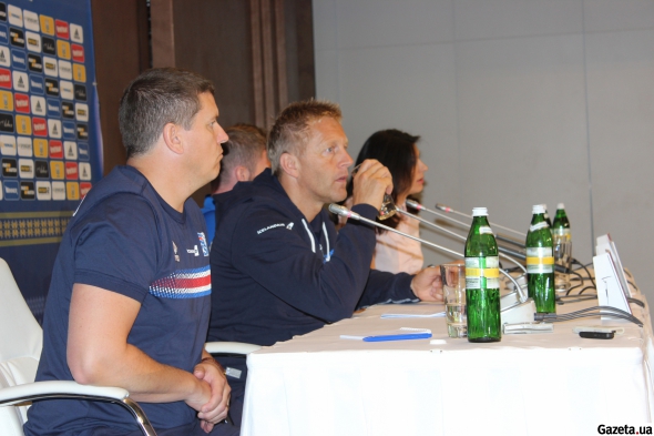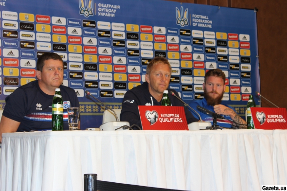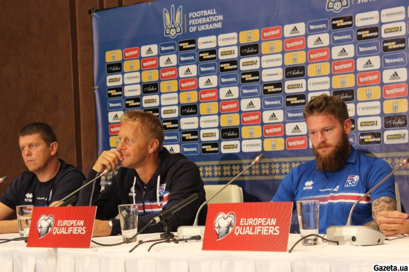 Арон Гуннарссон: "Так, нам дуже бракуватиме Колбейна Сігторссона (нападник травмувався і не прилетів до Києва). Колбейн — це один із наших лідерів і дуже важливий гравець для команди. Він завжди викладається на полі і багато забиває за збірну. Нам буде важко його замінити".