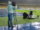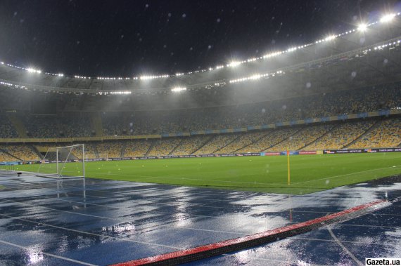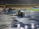 Саме тренування розпочалося з пробіжки і продовжилося грою у квадрат. Весь цей час у Києві падав дощ.
