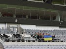 Газон арени знаходиться в хорошому стані. Сьогодні вдень працівники арени підстригали поле.