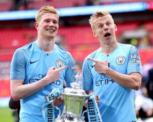 Захисник "Манчестер Сіті" Олександр Зінченко у своєму Інстаграмі опублікував фото з півзахисником Кевіном Де Брьойне та Кубком Англії