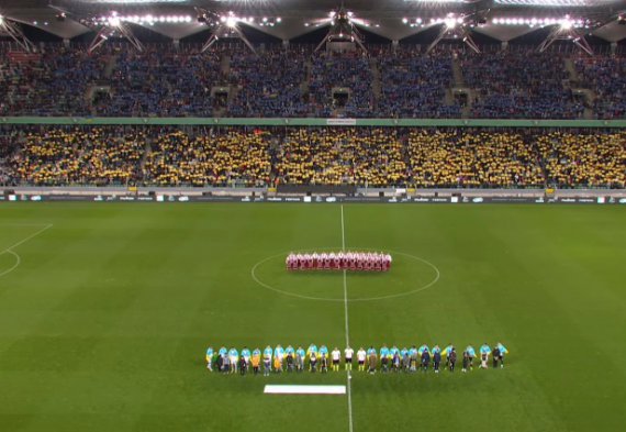 І якщо "Jeszcze Polska nie zginęła" вболівальники проігнорували, то "Ще не вмерла Україна" глядачі заспівали синхронно.