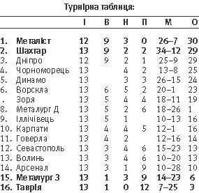 Футбол. Чемпіонат України. Прем'єр-ліга. результати матчів 13-го туру