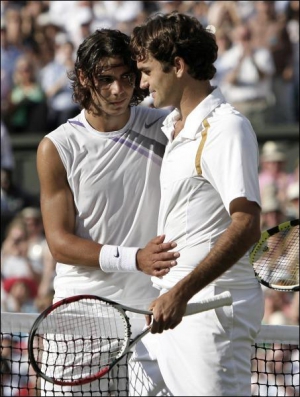 Швейцарський тенісист Роджер Федерер, 25 років, уп"яте поспіль став переможцем Вімблдонського турніру. У фінальному поєдинку лідер світового рейтингу переміг 21-річного іспанця Рафаеля Надаля — 7:6, 4:6, 7:6, 2:6, 6:2 й одержав за перемогу 700 тис. євро призових.