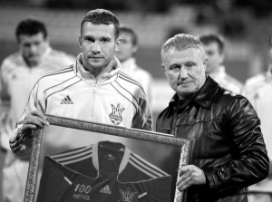 Андрій Шевченко (ліворуч) приймає вітання від президента Федерації футболу України Григорія Суркіса