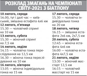 10 лютого в словенській Поклюці стартує чемпіонат світу з біатлону. Наші медальні надії пов'язані з двома спортсменами. 29-річний Дмитро Підручний має бути конкурентний у спринті та гонці переслідування. 30-річна Юлія Джима — в індивідуальній гонці.