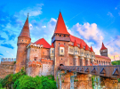 Замок Корвін, Румунія. Це один із найбільших замків у Європі, а також одне із семи чудес Румунії. Він був побудований у кілька етапів і має Лицарську залу та Залу парламенту.