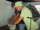 "Спочатку козяче молоко підігрівають. Потім додають сичужний фермент (для закваски). Коли молоко згортається, виходить сир. Його дістають і починають робити чоловічий сир "арсеніко", для цього сир треба віджати в спеціальному пресі. Це роблять тільки чоловіки - процес не з легких. Далі утрамбований чоловічий сир солять і залишають на три місяці дозрівати", - поділився чоловік.