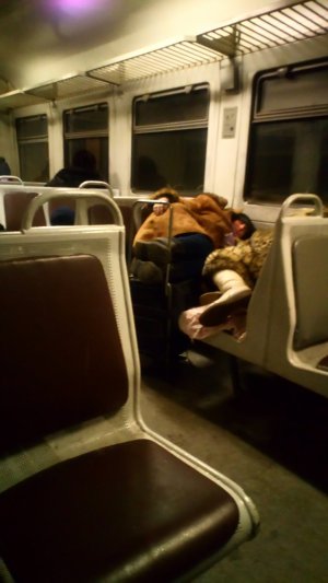 Коли пасажирів мало, ми спали. Вкладались вздовж сидіння, під голову – подушки. Катерина Остапенко клала ноги на сумку на колесах: нікому не заважала і не боялась, що торбу вкрадуть.