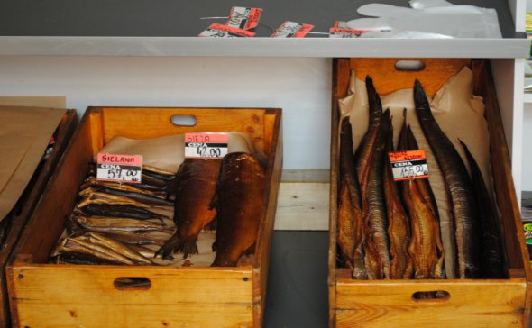 Мазурська кухня багата на страви з риби. За порцію судака у ресторані в середньому заплатите 20 злотих - 141 грн. У курортних містечках кругом натрапите на крамнички з копченою та в'яленою рибою. Кілограм копченого вугра обійдеться у 135 злотих - майже 1 тис. грн. Та найпопулярнішою тут є дрібна й дешева риба-ряпушка у різних виглядах, найчастіше - маринована в оцті, а потім смажена.