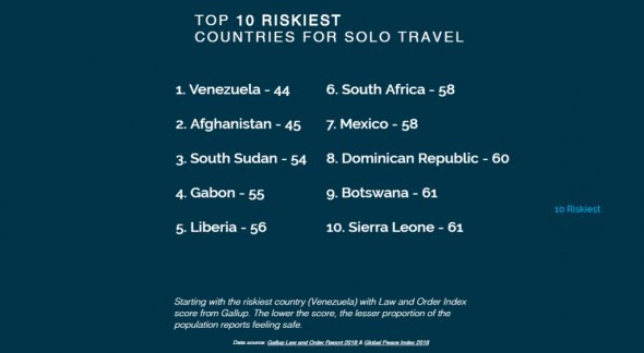 Рейтинг презентували у звіті онлайн-сервісу Wegoplace Solo Travel Safety Report.