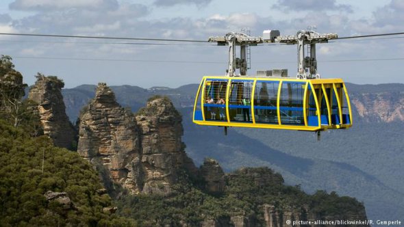 Над австралійським каньйоном в Блакитних горах поблизу Сіднея курсує підвісна канатна дорога Scenic Skyway, з кабінок якої відкривається найкращий вид на скелясте утворення "Три сестри" біля міста Катумба.