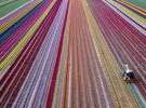 Квітучі тюльпанові поля поблизу міста Гревенброх у Німеччині сфотографували з висоти пташиного польоту.