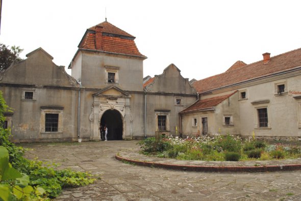 Верхній двір замку - це круглий барвистий квітник, крислатий горіх, невелика тераса та затишний простір, оточений невисокими стінами колись житлових будівель. Над центральною брамою вирізьблений рік побудови - 1530. Замок заклали українські шляхтичі, брати Андрій та Мартин Свірзькі. У радянські часи тут зробили школу трактористів. Потім передали на баланс Спілки архітекторів.