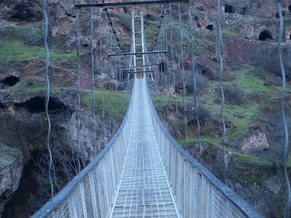 До підвісного мосту біля села Хндзореск на сході Сюнікської області я потрапив після обіду п'ятниці, 18 листопада. Заввишки 60 м, завдовжки – 100. Знаходиться в ущелині. Ще в 1950-х в її печерах жили близько 8 тис. людей.
