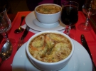 Щиро кажучи, була приємно подивована і кількістю усіляких наїдків за такі гроші, і якістю обслуговування в одному із цих кафе -- у меню є зо п'ять найменувань першого, другого і десерту на вибір. До того ж, порції великі. Наприклад, коли ми замовили мідії, тушковані у вині, то у горщику їх нарахували немало-небагато, аж 30 штук. До біфштекса приносять гарнір зі смаженої картоплі та овочів, а до спагеті по-неаполітанськи додають чималу порцію натертого пармезану. А якщо згадати ще й про шоколадний мус – Париж покидати просто не хотілося.