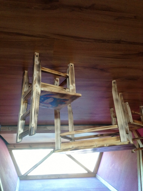 "У туалеті унітаз прикріплений на стелі. Догори дригом вмивальник, рушники. Навіть, штори, карнизи та вазони з квітами перевернуті. Здається, що земля йде з під твоїх ніг. Аби не знала, що це такий атракціон, то напевно здуріла би", - сміється Ольга Гайдук.