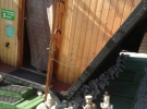 Вона цього літа разом з дітьми побували в дивному будинку. Двоповерховий будинок стоїть на даху. Він виготовлений з брусів.