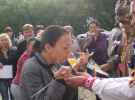 "Богдан" дає свій жупан і булаву бажаючим сфотографуватись в образі. У нашій групі гетьманські шати приміряв вусатий чоловік з Донецька Сергій Шацький.