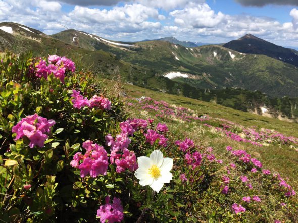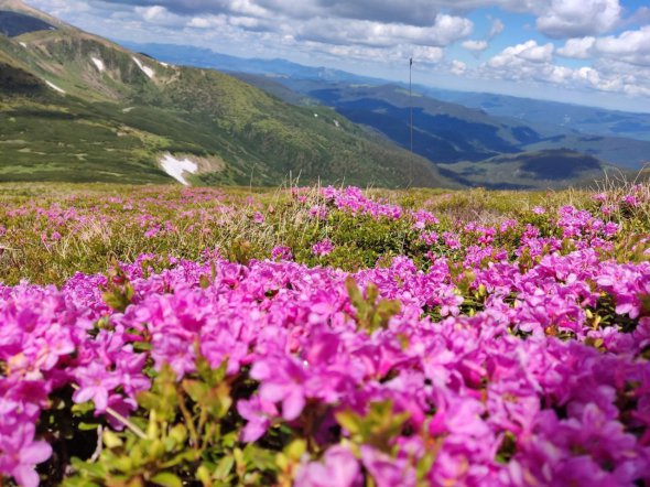 "Зараз вершини Чорногори вкриті прекрасними квітами – рододендроном, у нас його ще називають червоною рутою. Від гори Петрос і до гори Піп Іван Чорногірсий скрізь є ці квіти. Цвітуть не більше місяця. Наступних два тижні ще маєте можливість ними помилуватися. Вершина Шпиці у цей період найпопулярніша. Маршрут пролягає через турбазу "Заросляк", не доїжджаючи десь кілометр до турбази, старт біля моста, і далі потрібно прямувати через полонину Маришевську. Другий маршрут із села Бистрець, але туди важче дістатися, хоча маршрут не менш прекрасний", - розповідає Наталія Наконечна, яка нещодавно пройшла маршрут Бистрець– Шпиці– Бребенескул– Вухатий камінь–Дземброня.
