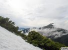 Коли серед хмар з'являються "вікна", з Хом'яка видніються панорами ще засніжених Говерли, Петроса і Драгобрата з його Близницями.