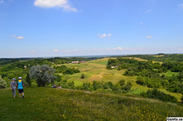 Приїжджає автобус із туристами з Кропивницького. Їхали по GPS і заблукали, кажуть. Провідник Олексій Трохимович із великим солом'яним брилем на голові кличе людей на екскурсію до Семидубової гори.