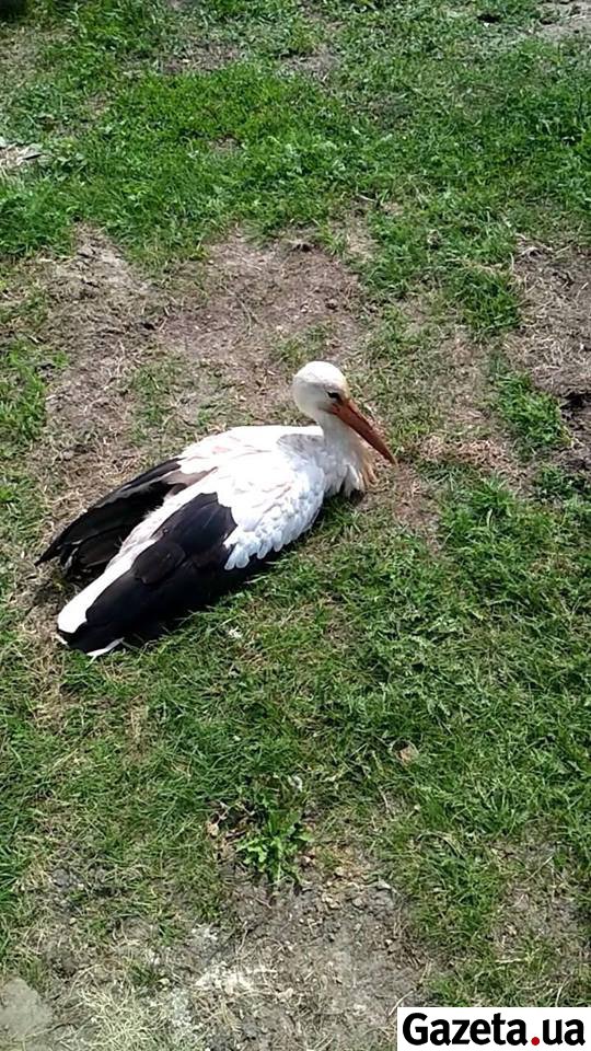 "Це наш Буся. Змалечку привчений до людей. Не боїться, але гладити себе не дає, клює. Буся, ну що ти лежиш? Вставай, гості приїхали", - звертається до птаха екскурсовод. Лелека встає на тонкі рожеві ноги, обтрушує пір'я від пилу і йде територією. Діти його лякаються й ховаються до кузні. У затінку альтанок відпочиває стадо молодих баранів.