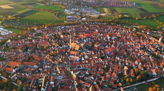 Здається, що туриста тут зустрічають такі ж красиві будиноки, вузенькі вулиці і, звісно, церква. Але відрізняється Нердлінген від інших своїм видом зверху.
