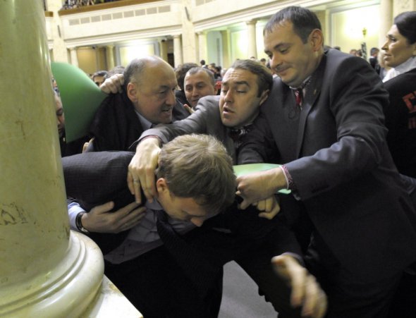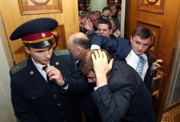 Представники фракцій "Батьківщина" і "Свобода" виштовхали з зали засідання депутатів Табалових, які не написали заяви на вступ до фракції.