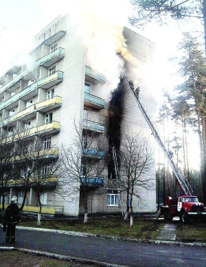 У ніч на вівторок близько 23.00 у санаторії "Поділля" в райцентрі Хмільник на Вінниччині загорілася танцювальна зала. Вона примикає до спального корпусу №3, в якому відпочивали 160 людей. У вогні загинула 74-річна Лідія Петрова з Кривого Рогу на Дніпропетровщині. 11 осіб потрапили до лікарні.