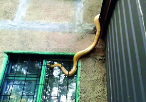 3-метровий пітон намагався влізти до квартири на першому поверсі полтавської 5-поверхівки. Змію помітили мешканці, викликали поліцію.