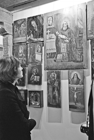 — Це придорожня ікона. На неї люди молилися, які йшли в дорогу. Всі зібрані образи куплені на барахолках. Я принципово не брала їх у людей з домівок. Зараз тут представлені ікони, намальовані як професіоналами, так і народними умільцями, — просить пройти далі в галерею. Вона поділена на різні частини. Кожна відповідає певному регіону України. Ікони повісили на стіни, де-не-де біля них стоять скрині. Це також частина колекції.