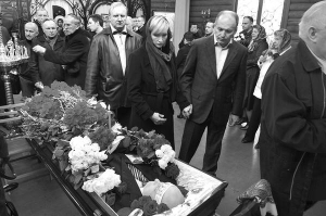 Відспівували Кисилевича у храмі Богородиці. Об 11.00 сюди прибувають близько сотні рідних, знайомих і колег померлого. Тримаючись за руки, до церкви заходять донька Кучми 40-річна Олена та її чоловік мільярдер 50-річний Віктор Пінчук.