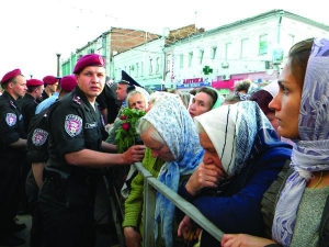 — Канєшно, доки вся еліта города не позамолює свої гріхи, нам, смертним, до собору зась, — голосно обурюється огрядна жінка років 50-ти. Її голос заглушають сигнали машин, які супроводжують авто з іконою. За ними п"ять чорних "мерседесів". Із них виходять керівники області й міста. Йдуть до храму на службу з нагоди прибуття чудотворного образа. Міліція закриває за ними турнікети. Решту людей не пускають.