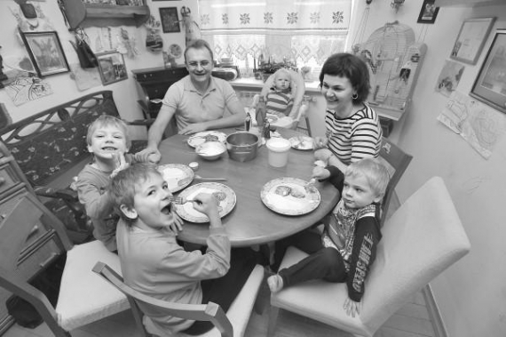 — Раз на місяць Андрій іде в супермаркет і закуповується, — говорить Катерина. — Уміє вибирати добрі продукти: дорогий сир, якісну олію, рибу, оливки. Узагалі в хаті господар — він. Якщо щось ламається, я дзвоню йому. Сміття виносять Іван із бабцею, як збираються в школу. А уроки з Іваном — це мій обов"язок. Інколи аж голова болить від їхньої біганини. Тоді добре помагає вигляд ремня. У вихованні дітей я більше криклива. Чоловік намагається вести з ними бесіди.