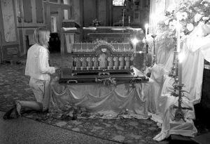 — У чоловіка рак кісток, — витирає хусткою очі 68-річна Ангеліна. — Прийшла помолитися, щоб хвороба відступила. Лікарі сказали так: надійтеся лише на Бога і на святих. Я вірю, що свята Тереза вислухає мої молитви.