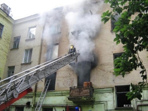 Наталія Харченко говорить, усі чотири поверхи в центральному під"їзді будинку вигоріли. Пожежу гасили до восьмої ранку.
