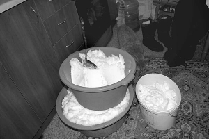 — А що маю робити, — набираючи в тазик сніг, говорить Раїса Рожкова, 61 рік. Живе на вул. Тернопільській. — Якось треба рятуватися. Питну воду куплю, а на туалет хіба накупишся. Хоч би хто попередив, що води не буде. І главне не кажуть, коли пустять.