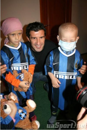 У вівторок, напередодні матчу "Динамо"–"Інтер", зірка італійського футбольного клубу португалець Луїш Фігу розвозив у Києві подарунки важкохворим дітям. Роздавав клубну форму, сувеніри, м"які іграшки, зошити, ручки й пенали.