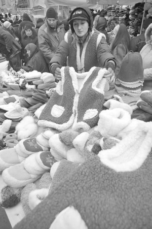 30-річна Тетяна Федорчук торгує шапками, шаликами й рукавицями. Не встигає подавати покупцям товар на примірку. Щоб зазирнути у дзеркало, жінки відштовхують сусідок ліктями.