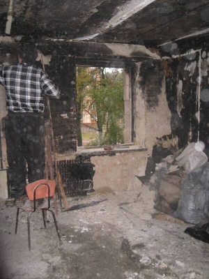— Мій брат Михайло виніс малого. Він у сусідній кімнаті живе, — Микола Габор проводить у помешкання. Там стоять обгорілі меблі, холодильник. Розплавилося пластикове вікно. — Його жінці наснилося, що син плаче. Схопилася, а то за стінкою дитя кричить. Брат забіг у комнату, дитя під мишку і на вулицю. А Крат п'янючий йому назустріч іде, не пойме, що сталося. Обох у больницю забрали.