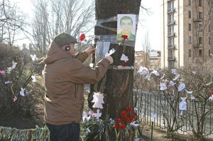 Найбільше людей вбили на вул. Інститутській, тепер — Алея Небесної сотні. Уранці 18 лютого тут збираються понад дві сотні людей. Розвішують на довколишніх деревах паперових ангелів, що символізують душі загиблих. Священики Православної церкви України правлять панахиду.