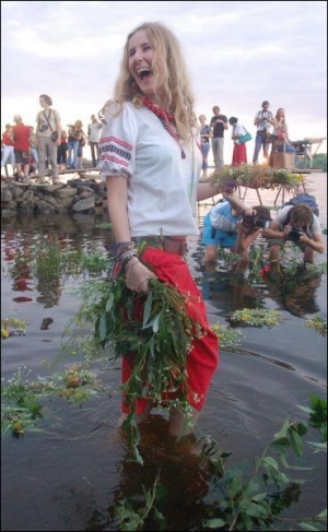 У неділю свято Івана Купала відзначали у столичному парку "Оболонь". Театралізоване фольклорно-обрядове дійство показували діти з гурту "Дай Боже!". Його керівник 54-річна Ольга Мельник каже, що виступ готували протягом двох місяців: